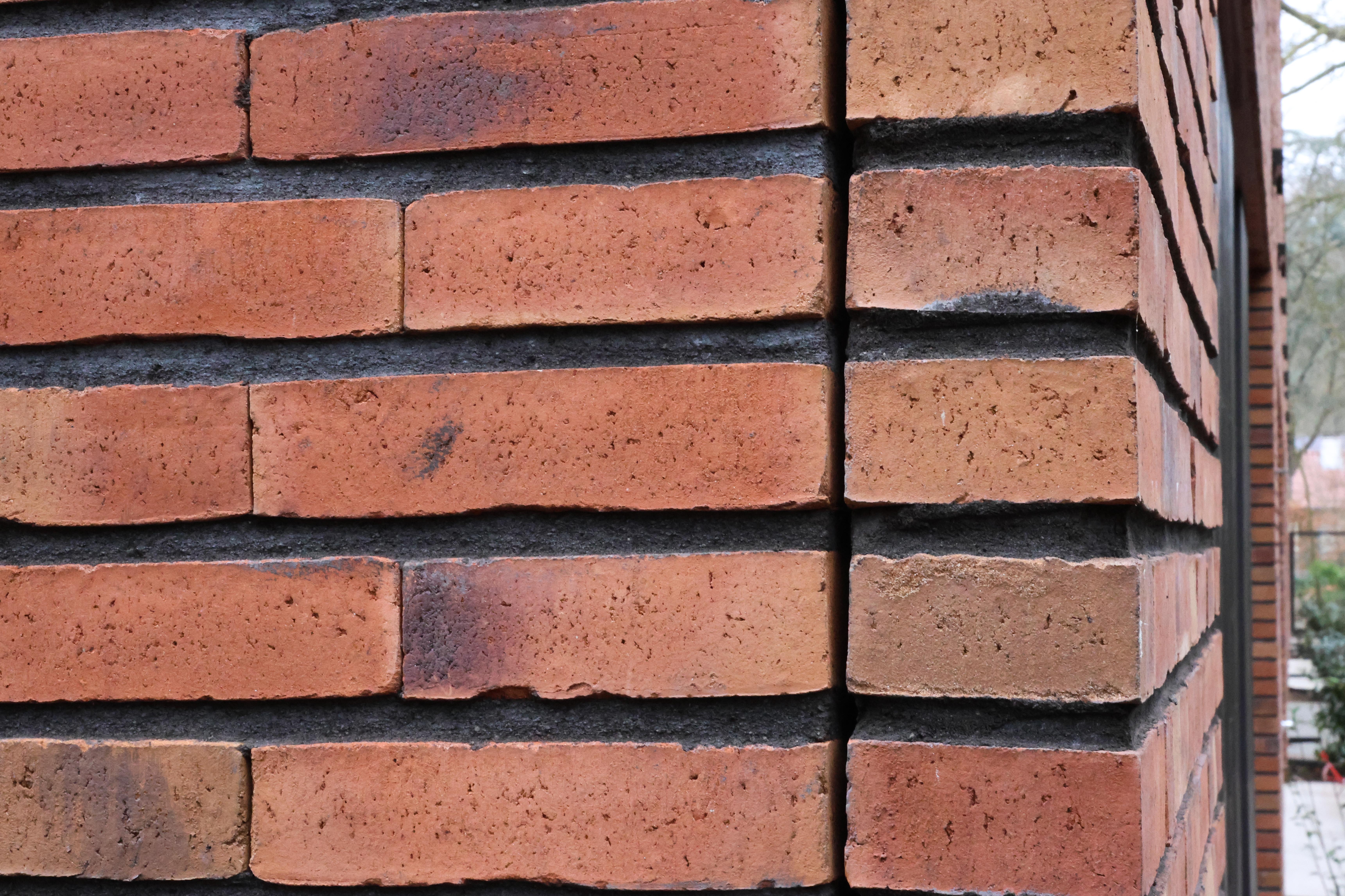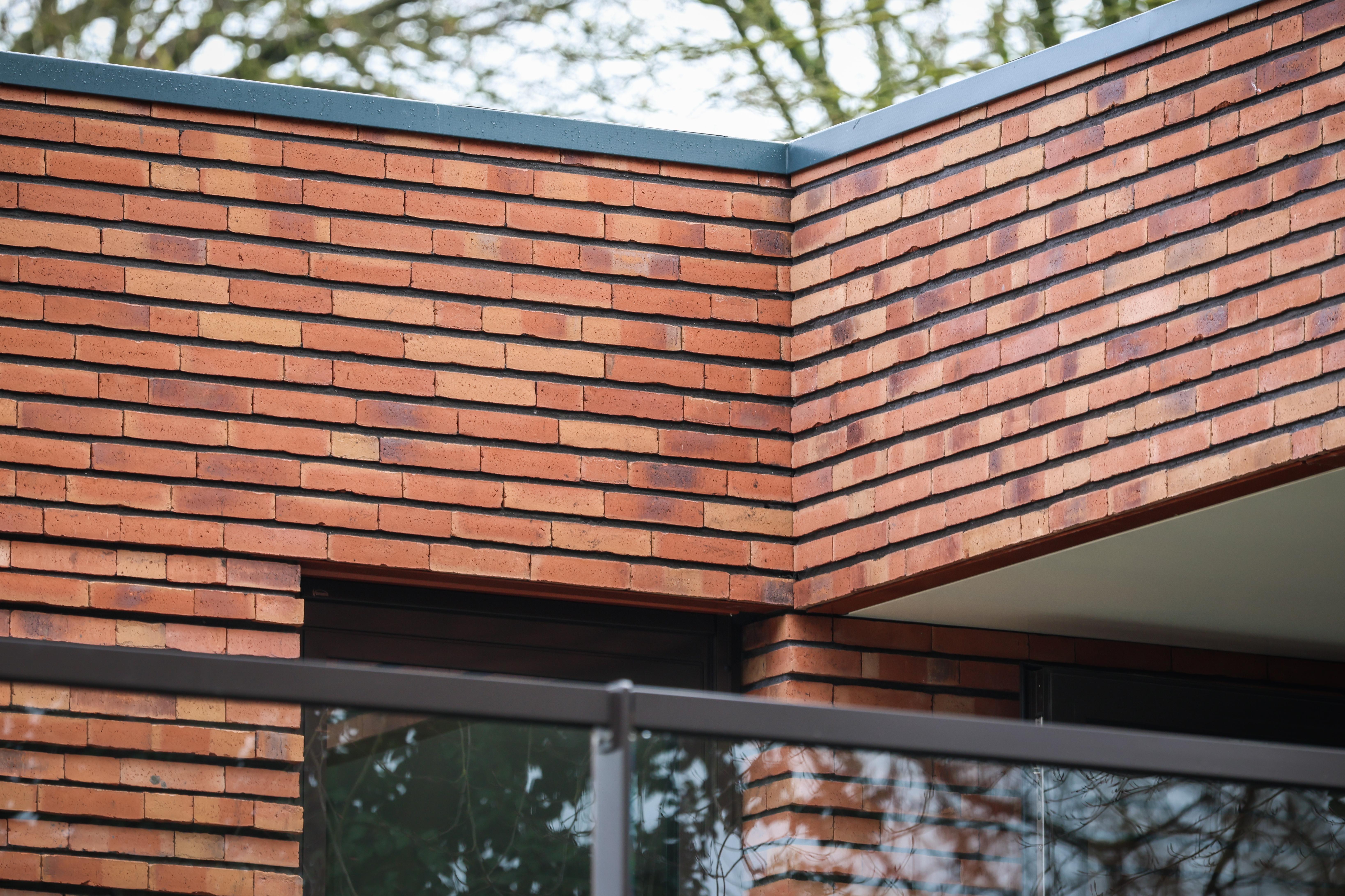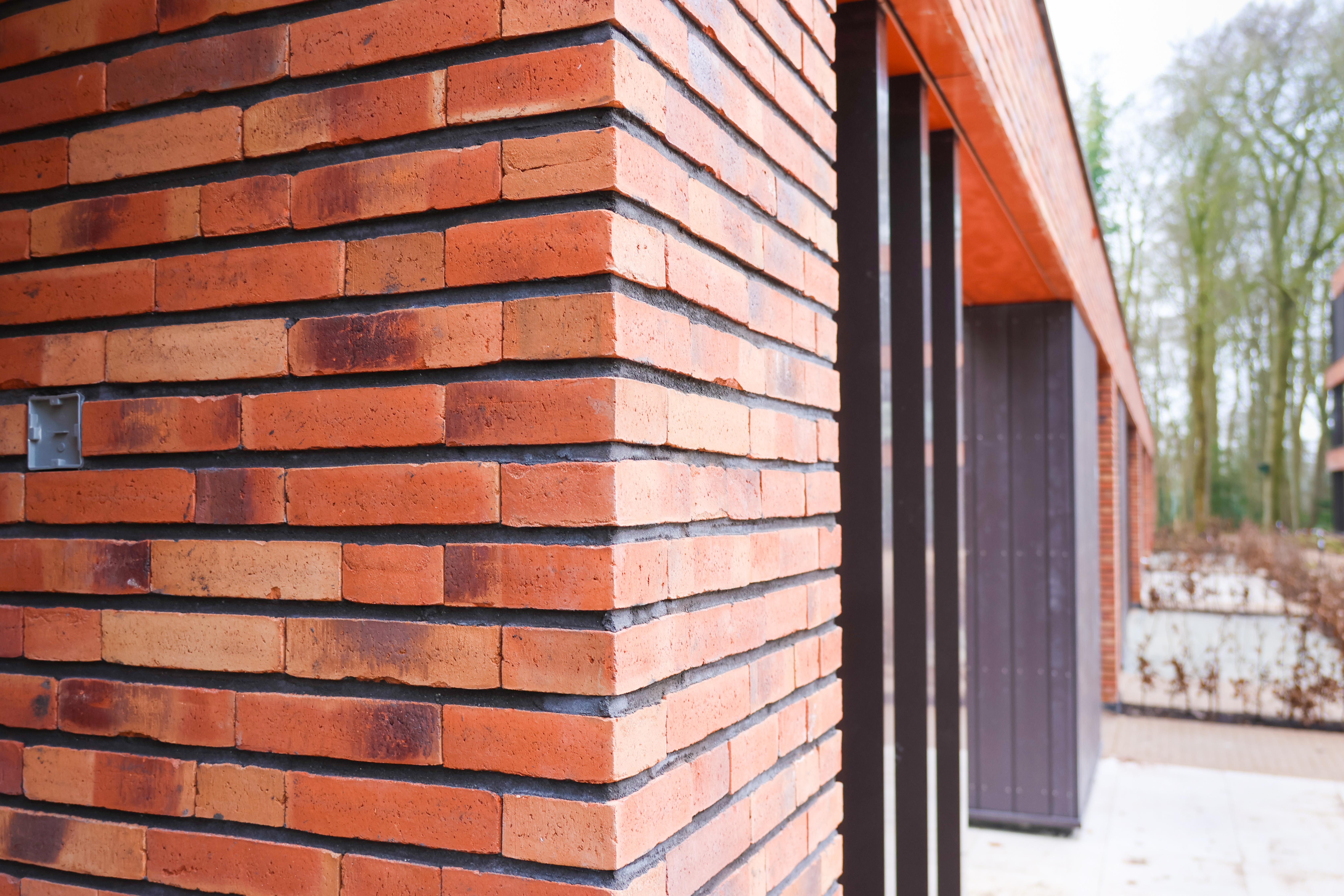 Voor dit project is er gekozen voor gevelstenen code 29860 aqua oranje blauw WS WF van Rijswaard Baksteen. Het metselwerk is stootvoegloos uitgevoerd en op verschillende plaatsen verspringend verwerkt, wat zorgt voor een speels en karaktervol gevelbeeld.