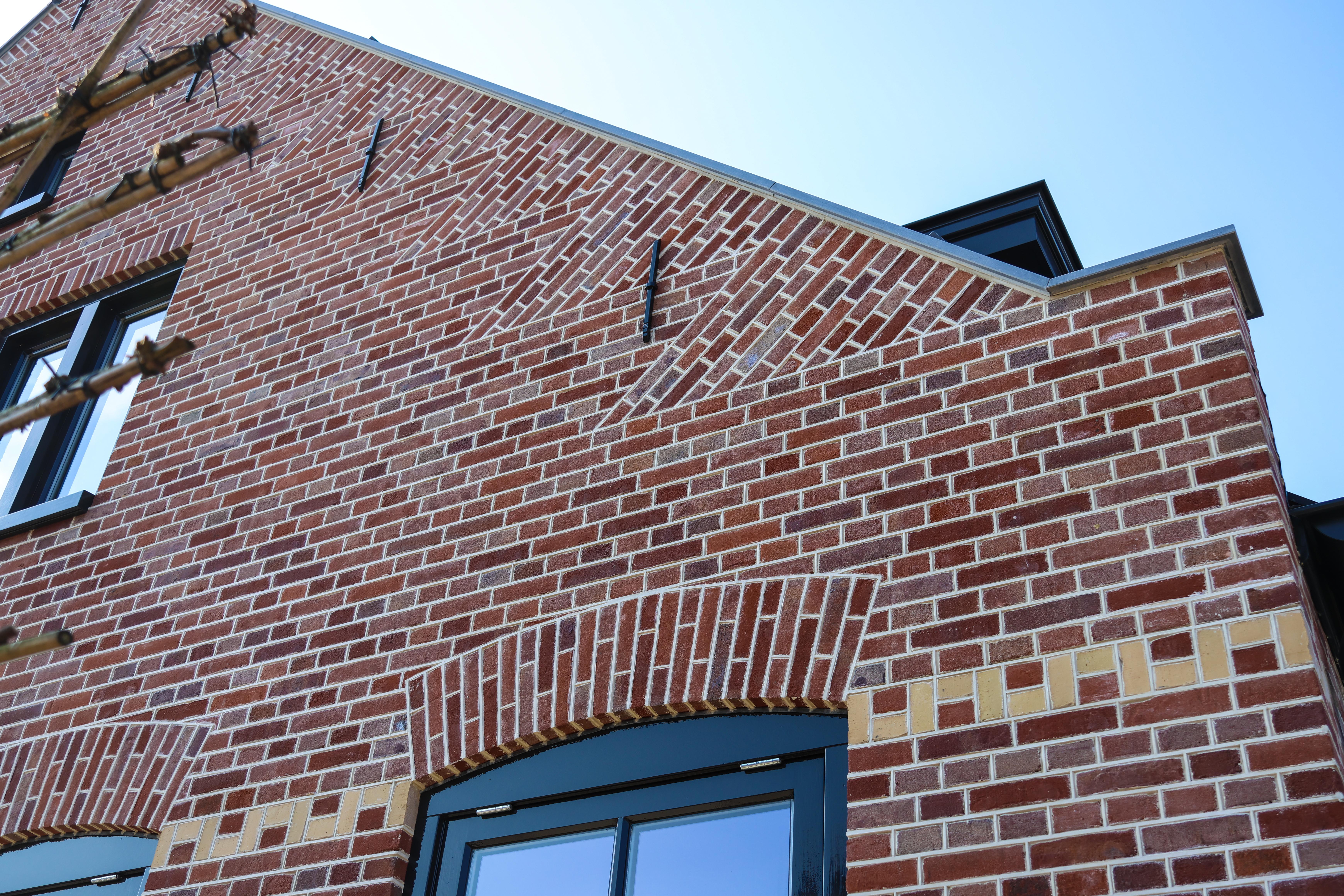 Wat deze woning bijzonder maakt, is het ambachtelijke metselwerk. Het traditioneel boerenvlechtwerk gecombineerd met een subtiele vanille speklaag en een strakke knipvoeg voor een verfijnde afwerking.