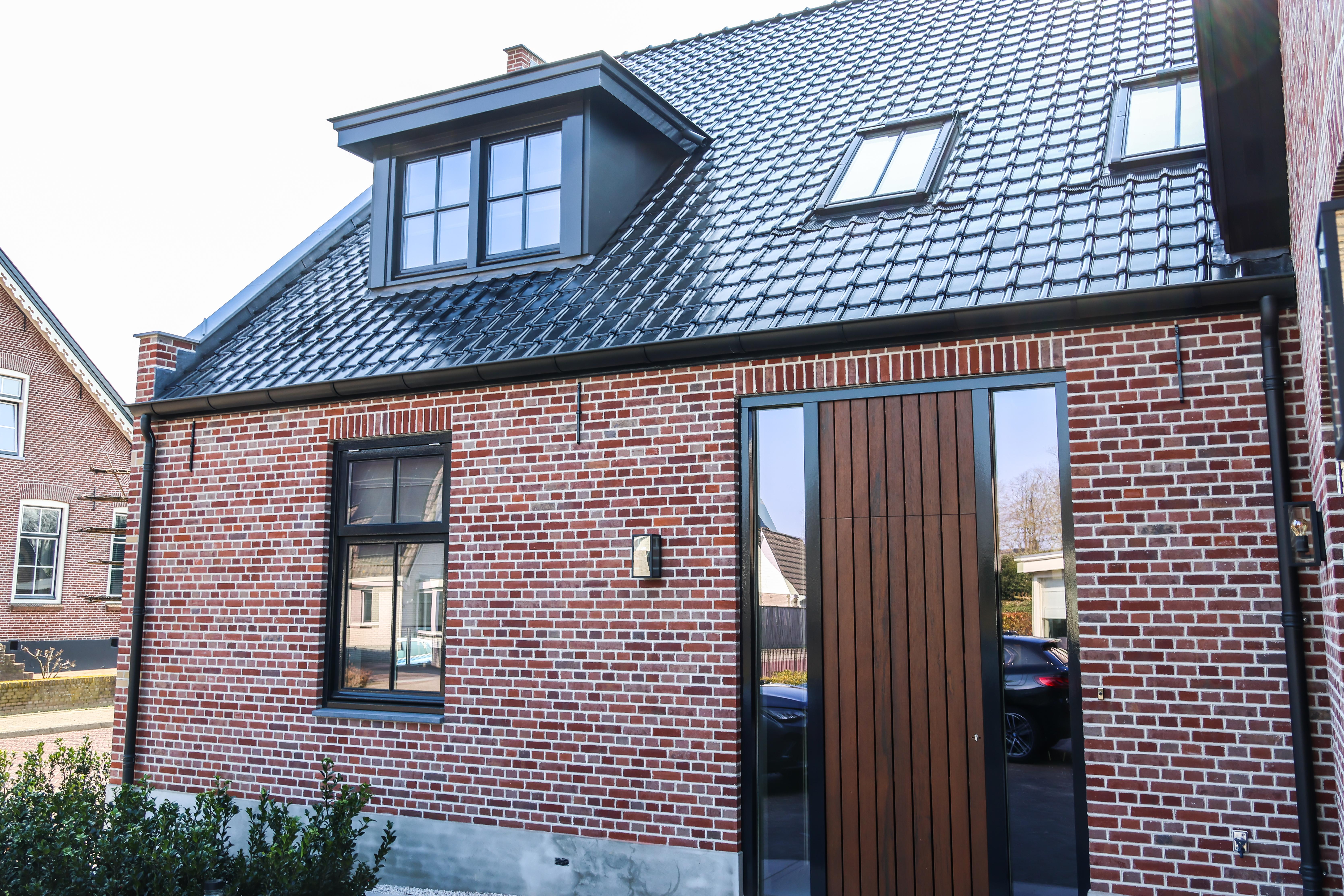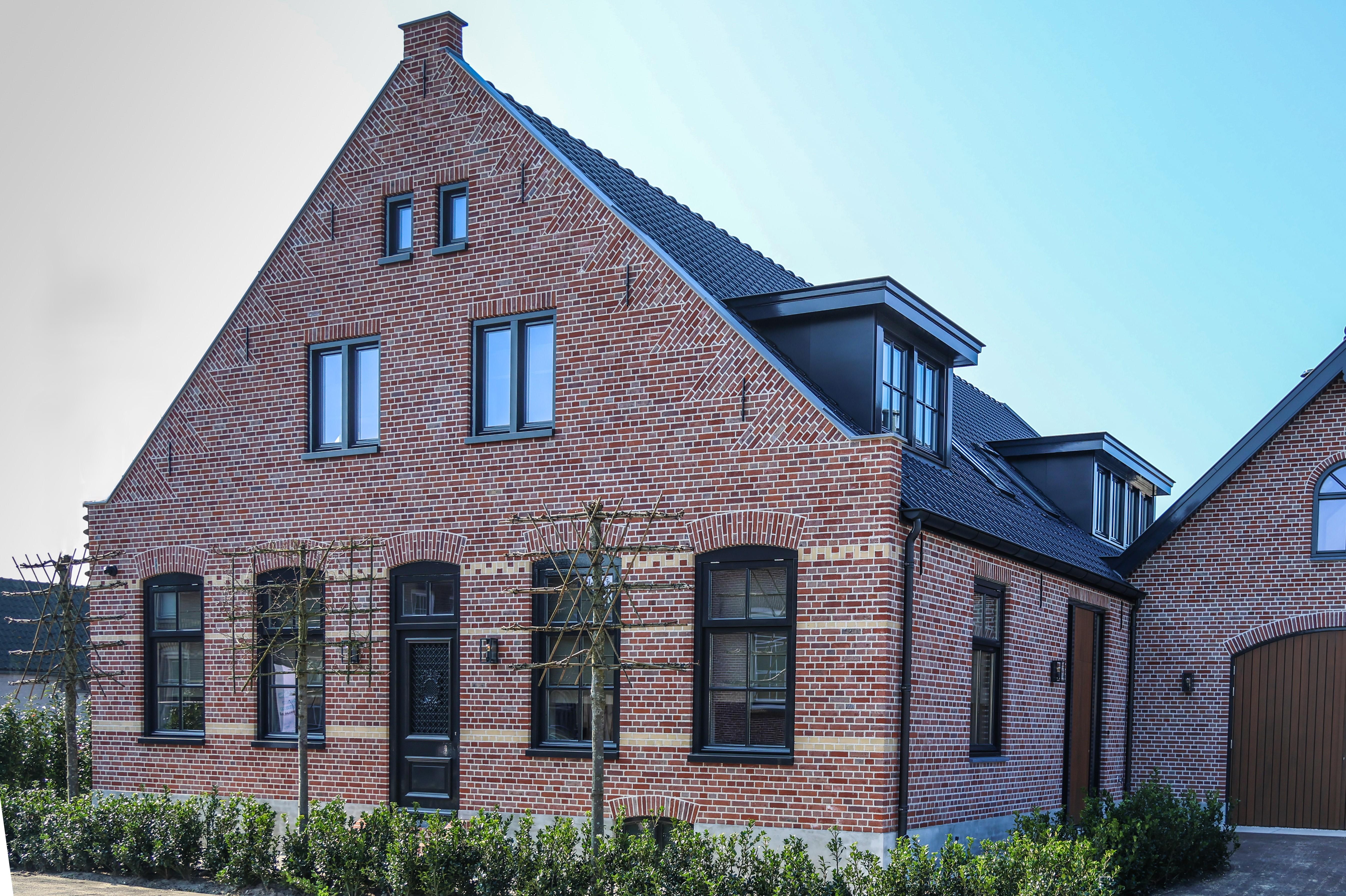 Voor deze prachtige woonboerderij in Bunschoten koos de opdrachtgever samen met Heijnen Bouw voor speciaal gebakken verkorte gevelstenen, geschikt voor verwerking in kruisverband.